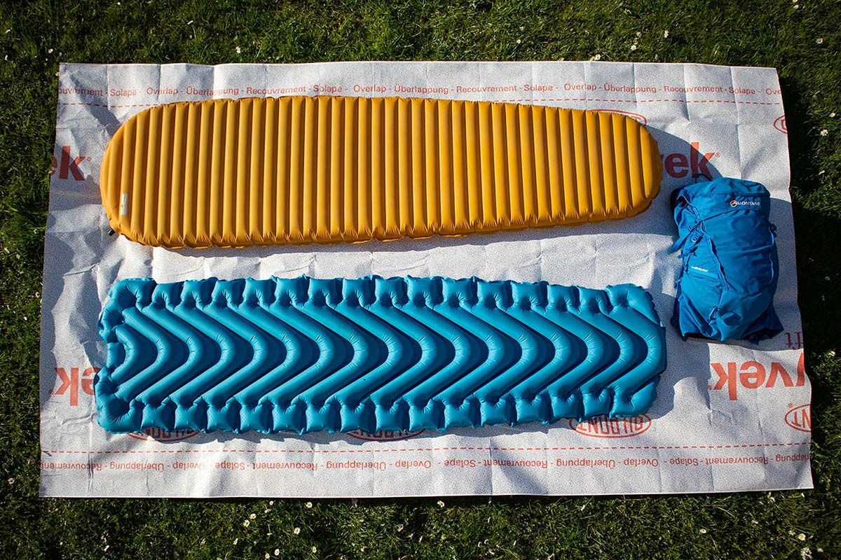 Wymiar 150 x 250 cm jest idealny dla dwóch osób. Po obu stronach maty dmuchanej będzie niewielki zapas, a przy nogach lub głowie zmieścisz jeszcze plecak. Tyvek działa dwustronnie, więc nie ma znaczenia, którą stroną położysz go do góry. Jest paroprzepuszczalny, wyróżnia się wysoką wytrzymałością i niską wagą. Jego niewielką wadą jest biały kolor, który rzuca się w oczy, oraz to, że większość mat dmuchanych ślizga się po nim w nierównym terenie, co można rozwiązać antypoślizgową obróbką powierzchni.
