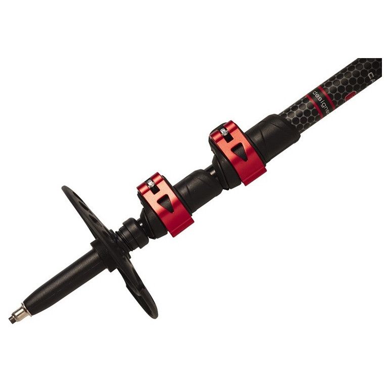 Kije są 3‑sekcyjne, przy czym pierwsza (górna sekcja) wykonana jest z karbonu, a dwie dolne z aluminium. Na samym końcu znajdziesz stalowe (widiowe) groty. Kije mogą się pochwalić przedłużoną rękojeścią z przyjemnej pianki EVA. Uchwyty zapewniają wygodny chwyt zarówno w rękawiczkach, jak i bez nich. Oczywiście nie zabrakło też regulowanej pętli z miękkiej taśmy.